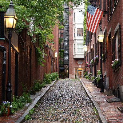 石畳の路地、ガス灯、赤レンガの町並みが続く最もボストンらしい高級住宅地、ビーコンヒルをゆったりと散策します。19世紀の街の雰囲気がそのまま残されているエーコン通り、若草物語の作者オルコットが住んでいたピンクニー通り等、ボストンの歴史をたどります。アンティークショップやお洒落なショップ、カフェが立ち並ぶチャールズ通りも立ち寄ります。